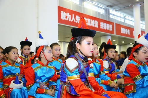 伴随着欢快的歌伴舞《可爱的小羔羊》旋律,本次科技艺术节拉开了帷幕,同学们表演的蒙古歌舞、诵读等节目,引来现场的阵阵的欢呼声和喝彩声。