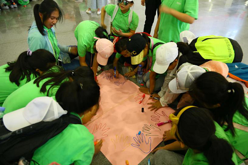 辅导员老师们在仪式上庄重宣誓,并承诺将竭尽全力于夏令营活动,认真完成各项任务。来自武汉市武昌区中山路小学的350名老师和同学们参加了此次开营仪式。
