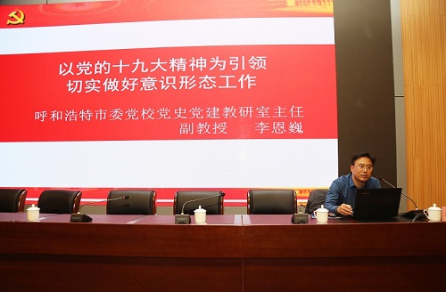 随后,由呼和浩特市委党校李恩巍教授为三个支部的全体党员作了题为《以党的十九大精神为引领,切实做好意识形态工作》的讲座。与会同志们认为要时刻增强“四个意识”,坚定“四个自信”,坚决维护习近平总书记的核心地位,坚决维护以习近平同志为核心的党中央权威和集中统一领导,加强自身党性修养。党课结束后,现场进行了全民科学素质答题活动,大家积极踊跃参与互动,在提升干部职工科学素质的同时,增强了党建工作的活力。
