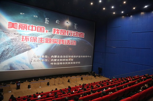 观看完影片,内蒙古环境保护宣传教育中心副主任郭瑞清及内蒙古科技馆馆长朱文分别进行了环保主题的致辞与讲话。郭瑞清提到“这样的科普宣传与环境教育的结合,民族文化与生态文化的结合,“馆校结合”的实践活动,是具有示范性和引领性的”。朱文倡议“保护环境,是我们共同的义务和责任,建设美丽中国,践行绿色环保,要从我做起,从身边做起”。