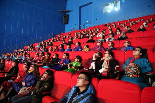 书写环保宣言环节结束后,民族实验学校的师生一起观看了科普影片《座头鲸》。这部影片首次使用IMAX®3D相机,在地球上的每一片海域中寻找座头鲸并揭开座头鲸的秘密,呼吁人类保护座头鲸、保护海洋环境。