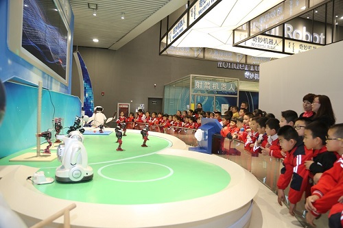 讲座结束后,农大附中小学科学组三年级组的同学们还跟随内蒙古科技馆的科技辅导员参观体验了 “机器人”在生产、生活中的应用和高新科学技术在“交通”中的应用,近距离领略、探索了智能机器人的风采。其中,一些经典的互动展品,比“如画像机器人”、“智能家居机器人”、“机器人舞剑与陀螺表演”以及“机器人秀场”等,都让大家大饱眼福,直呼过瘾。