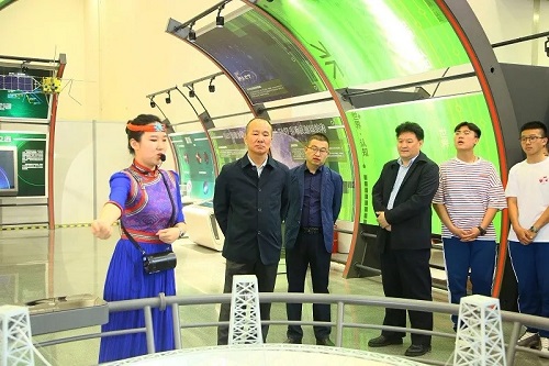 启动仪式后,苏雅来等领导及现场的师生在科技辅导员的带领下来到专题展厅,参观了“创新决胜未来”主题展,学生们围观在展品四周,好奇地进行探索和体验,科技辅导员在讲解过程中不时与大家进行互动。在“距离·联通”展区,以港珠澳大桥、复兴号和国产大飞机等为代表的国之重器,深受喜爱,大家连连点头、频频称赞。在“领域·拓展”展区,苏雅来和额尔德尼等人登上“蛟龙号”,戴上3D眼镜,亲自感受和体验了载人深潜的魅力。在接下来的“世界·认知”展区,不论是脉冲星之远,还是量子之微,都有我们中国人做出的贡献,大家认真听着讲解的同时,脸上洋溢着自豪的微笑。