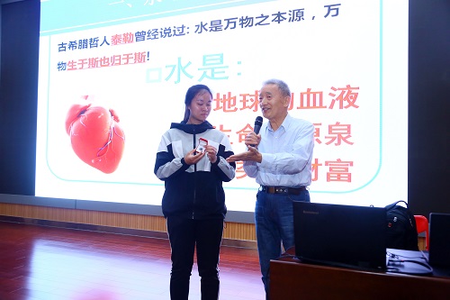 活动特邀许木启院士做《水体污染与水资源保护》主题报告。许教授从水——生命的源泉、我国水体污染表征与危害、水污染综合治理与成效、水资源利用与保护等几个方面,全面而深刻地讲解了我国水体污染与水资源保护现状。依托其长期从事的实践研究,用真实的案例和生动的讲解,使观众深刻认识到水对于动物、植物和人类生长与繁衍的重要意义,以及水体污染带来的可怕危害。在全社会呼吁节约用水,充分利用循环水,树立全民节水意识。