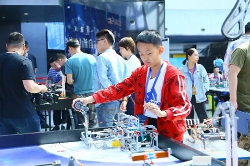 开幕式后,各比赛项目依次有序进行。参赛选手信心满满,斗志昂扬,紧张激烈地进行拼装机器人、编写程序、赛前调试、赛场角逐等环节。本届大赛设有机器人综合技能比赛、FLL机器人工程挑战赛、VEX机器人工程挑战赛、教育机器人工程挑战赛、WRO常规赛、VEX IQ挑战赛、MakeX机器人挑战赛7个比赛项目。相比往届,竞赛项目和参赛人数都有所增多。其中,WRO常规赛、VEX IQ挑战赛、MakeX机器人挑战赛三个赛项为2019世界青少年机器人邀请赛的选拔赛。经过2天激烈的角逐,获胜的7个赛项的冠军将被推荐参加2019世界青少年机器人邀请赛。