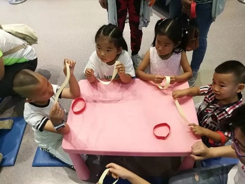 各位小朋友在认真的完成自己的作品,在亲自动手中明白莫比乌斯带科学原理是如何而来。