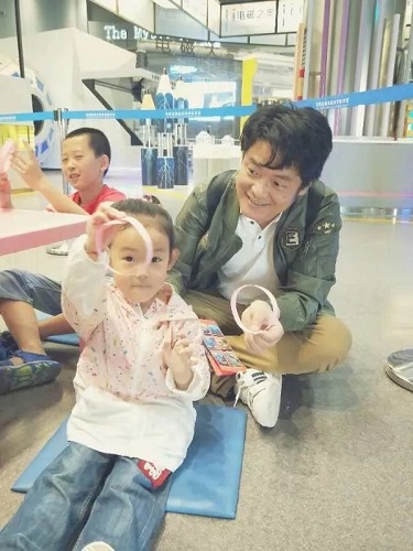 “ 完成啦,看我的莫比乌斯带。”这位小朋友非常开心的向我们展示她的作品。