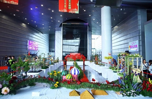 “我为党和祖国送祝福”插花花艺展 在内蒙古科技馆火热开展