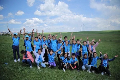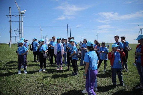 7月20日,夏令营50名营员在工作人员的带领下走进绿意盎然的辉腾锡勒草原,开启草原科学之旅。在混着草香的微风中,观察辨别草原上的植物,了解草原植被;在转动的风车下,了解风力发电原理,体会电力资源来之不易。徒步火山坑底,看看盾形火山到底什么样,采几块火山石留作纪念。