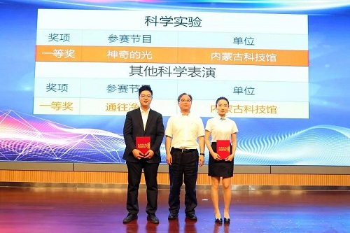大赛中,来自全区8所科技场馆的49位科技辅导员各显身手。经过激烈的角逐,内蒙古科技馆的段秉文和呼伦贝尔科技馆的金妍荣获展品辅导赛一等奖,内蒙古科技馆的《神奇的光》和《通往净土》获科学实验及其他科学表演一等奖,共同获得了全国总决赛的参赛资格,将代表内蒙古赛区参加全国总决赛。