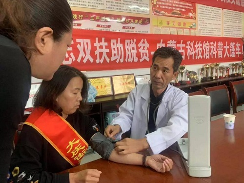 发布时间:2019-09-17 14:57 文章来源:内蒙古科技馆为迎接新中国成立70周年,深入开展“不忘初心,牢记使命”主题教育活动,让广大居民尤其是青少年近距离感受我国科学技术进步成果,倡导居民形成科学、健康、绿色、环保的生活方式,9月9日上午,内蒙古科技馆联合乌兰察布市卓资县大庆街社区在卓资山大庆街小学组织开展健康义诊活动。