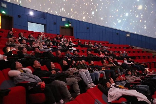 首先,全体师生至我馆特效影院进行学习交流现场教学,分别于巨幕影院、4D影院、球幕影院观看影片《海洋 蓝色星球》、《狂野之海》、《恒星的奥秘一生》。在特效影院这一特殊的教学场景内,大家针对科普电影的表现形式、场景设计、构图、背景、音效、剪辑等一系列的拍摄技巧进行研学探讨。