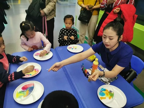 观影后,参加活动人员分组开展了“牛奶动画”“你好,地球”“趣味火箭”等科普互动课程。在科普辅导员的带领下,孩子们与家长共同聆听讲解、做互动实验,一同探究科学的奥秘。