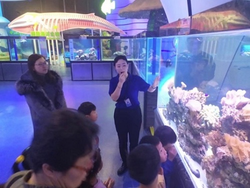 活动中,大家在内蒙古科技馆巨幕影院观看了影片《海洋:蓝色星球》,电影呈现了海洋中生活的多种多样的动植物,展示了海洋世界的壮丽奇炫。科普志愿者还从环境保护的角度阐释了海洋生物与人类的关系,增强了现场观众保护海洋环境和海洋资源的意识。