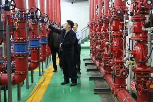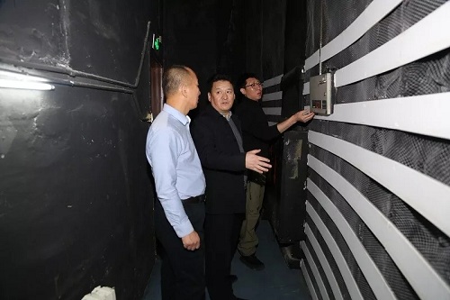 苏雅来一行对科技馆馆各常设展厅、专题展厅、特效影院、餐饮区、强弱电间、空调机房、职工食堂、厨房、消防水泵房、高压变电室、中控室、电梯等重点位置进行了全面细致的检查。