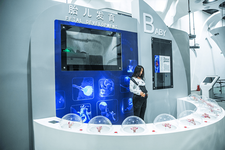 本展品通过多媒体互动结合人物及胚胎模型等展示方式,为您生动的展示了胎儿发育的全过程。您可以通过观看视频,了解从受精作用到胎儿发育到40周的过程。同时,可以观察一到九月胎儿的胎儿模型并按下相应月份的按钮,通过多媒体动态显示胎儿在子宫内的状态来了解胎儿每个阶段的发育状态。