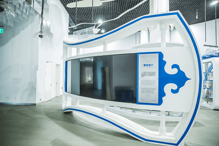 本展品通过LED显示屏和触控屏互动区,为您展示蒙医学形成、发展的历史,您可以点选触摸屏中的蒙医名家、蒙医典籍、蒙医理论选项,了解蒙医学相关知识。
