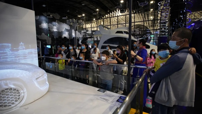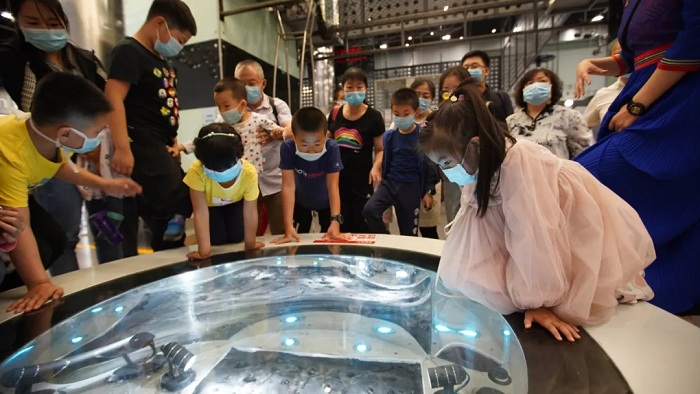 为向奋战在一线的医务工作者表达最崇高的敬意,内蒙古科技馆为医务工作者及其家属提供专项科普服务,当天邀请内蒙古自治区第三医院等单位的近百名医务工作者及其家属参观体验内蒙古科技馆各展厅展品,并在科技馆巨幕特效影院观看了特效影片《海洋:蓝色星球》。