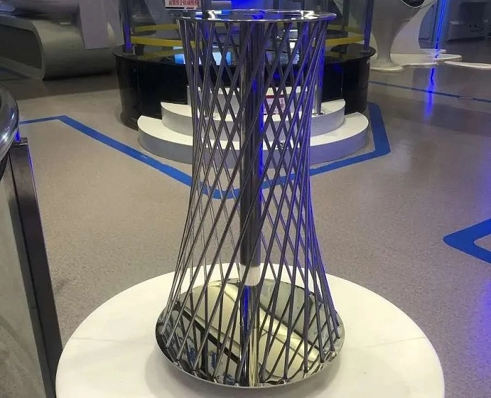 该模型与我们中间的自动演示模型是一样的,单页双曲面的应用就更为广泛了,发电厂的冷却塔就是其中之一。根据单叶双曲面的构成特性,它可以用一根根笔直的钢梁来建造,这样既可以用最少的材料来维持结构的完整,还可以减少风的阻力,而且对流快,散热效果也更好。由于其良好的稳定性和外观,单叶双曲面还常常应用于一些大型的建筑结构,比如广州的地标性建筑——“小蛮腰”,它的主体结构也是应用了单叶双曲面。