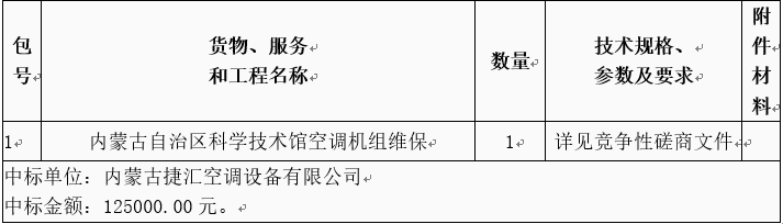 内蒙古自治区科学技术馆空调机组维保中标公示