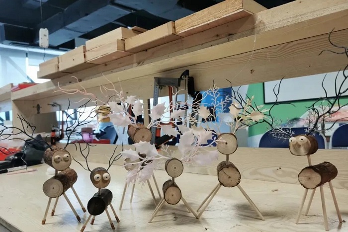 《万丈深渊》展教课是慈溪科技馆的招牌课程。通过让孩子亲手制作小物件来传授平面镜相关知识,让孩子更有参与感,更好地记住知识点。《创意木工》课程重在培养孩子的创新动手能力。在老师的指导下,内蒙古科技馆辅导员也现学现用,动手制作了可爱的“木头小鹿”模型。