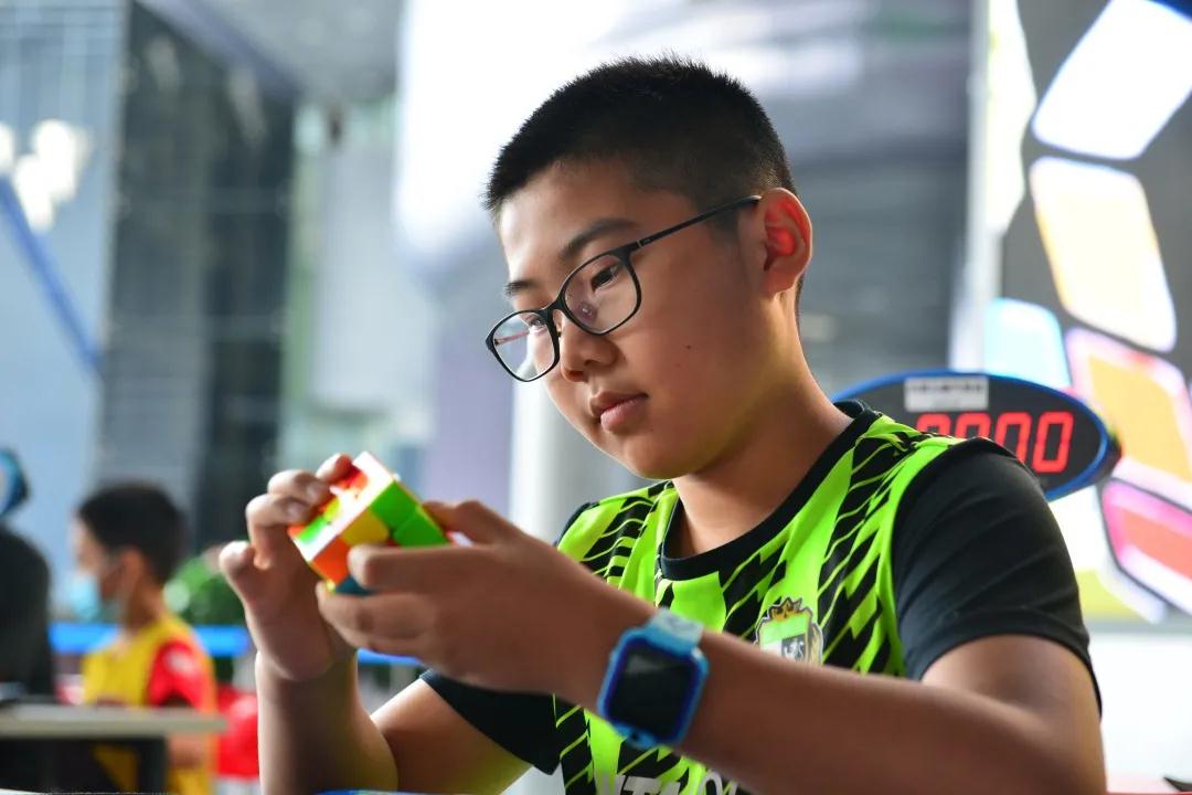 初赛采用“魔方一面复原”的方式进行筛选,要求只复原魔方的一面即可,时限30秒,规定时间内完成的可进入复赛,未完成将停止比赛。复赛采用“魔方六面复原”的方式进行晋级赛,要求复原魔方的一面即可,时限4分钟,规定时间内完成的可进入决赛,未完成将停止比赛。决赛采用“统一图形,魔方六面复原”的方式进行,按用时长短评出一等奖1名,二等奖2名,三等奖3名。其余均为参与奖。全场最好成绩为单次11.479秒。