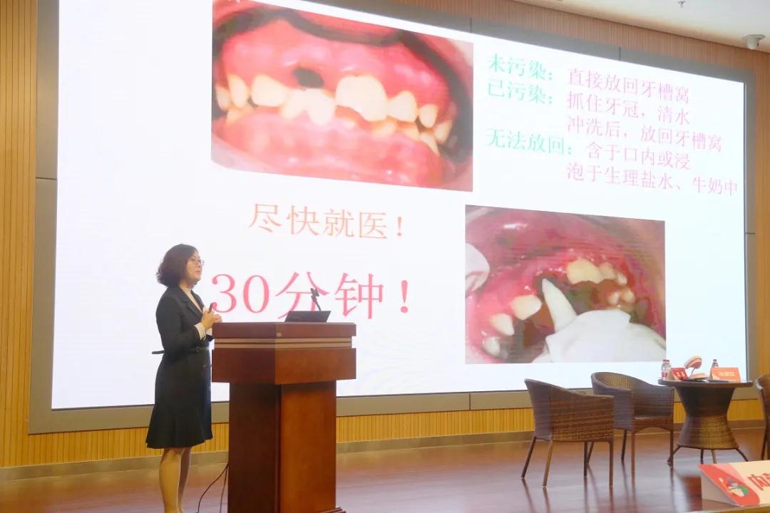 活动首先由孟晶作了题为《儿童口腔健康管理》的科普讲座,简要讲解了健康牙齿的管理,龋病(小黑牙)、牙髓炎、根尖炎、牙外伤的治疗,以及乳牙缺失的间隙管理等知识。