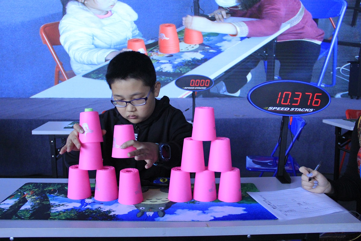 10月6日,叠杯大赛正式开始! 哨声一响,整个赛场顿时沸腾起来,加油助威声此起彼伏,不绝于耳。赛场上,参赛选手们备受鼓舞,以最快的速度把杯子叠成金字塔。经过初赛、复赛、决赛紧张而激烈的角逐,共决出一等奖一名,二等奖两名,三等奖三名。选手们在赛中学、学中赛,在展示竞技风采的同时,也锻炼了大家的手眼协调能力。