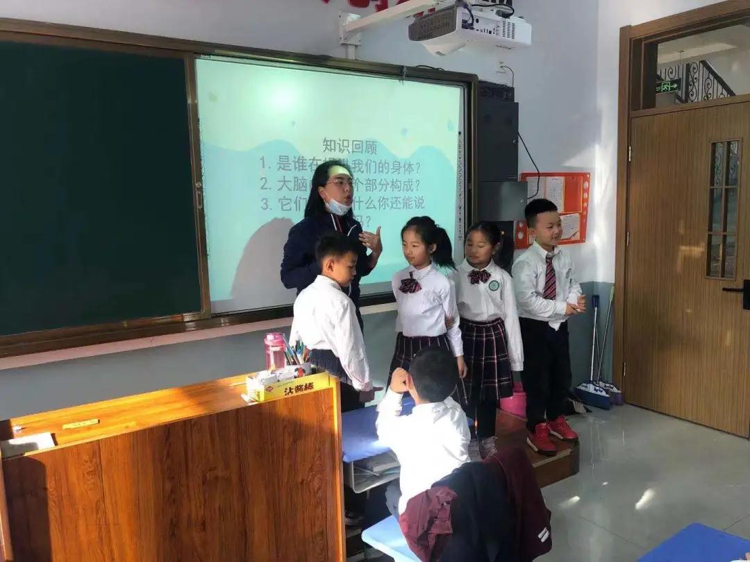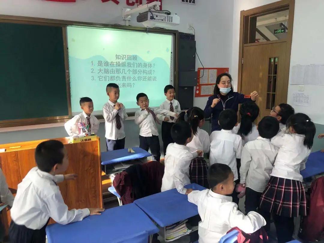 《看谁反应快》科学课教会了同学们在互动活动中认识大脑分区,知道是谁主管我们身体的协调,还通过“你比划我猜”、“大家一起动手拍节奏”等环节让大家感知到了大脑的神奇。