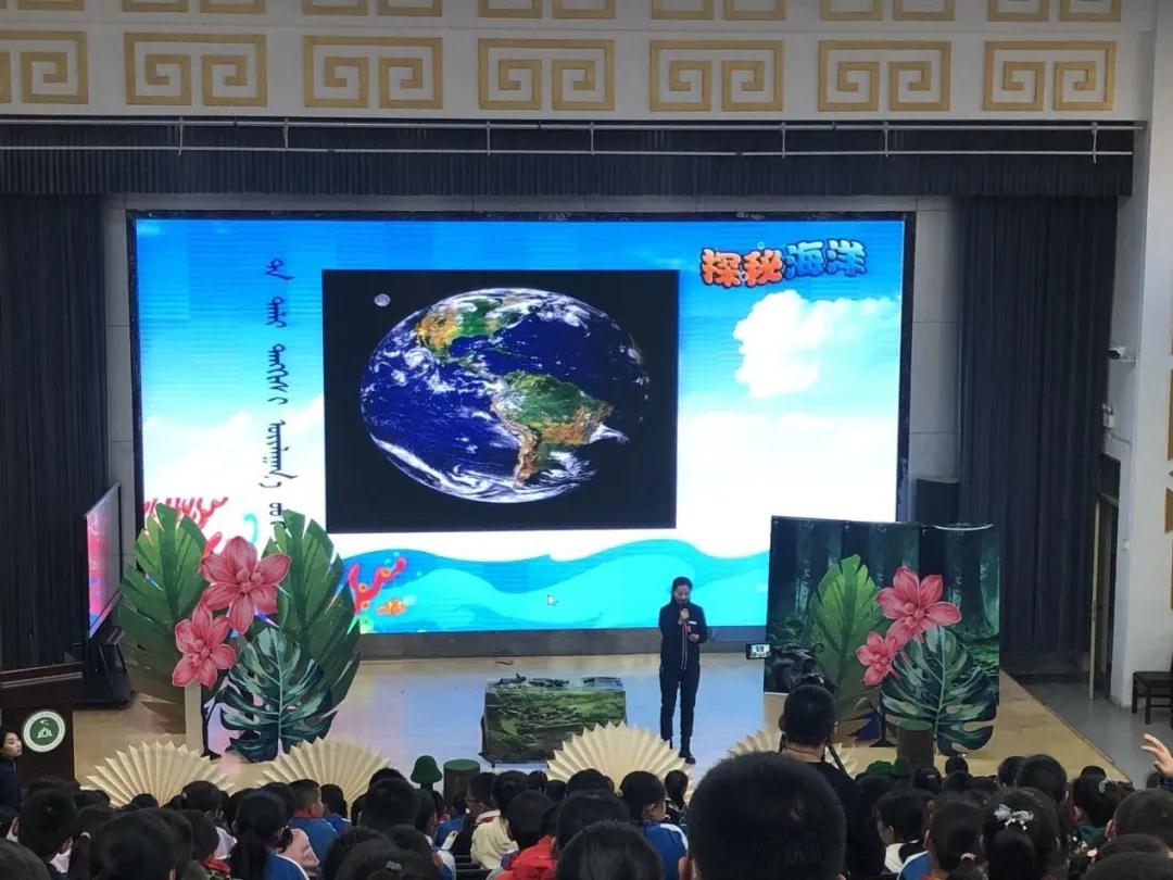 师生们还观看了蒙古语版科普影片《海洋:蓝色星球》,大家在欣赏海洋壮美景色的同时也意识到了保护海洋及海洋生物的重要性。影片放映结束后科技辅导员为师生们上了一堂科学课《探秘海洋》,课堂上同学们踊跃参与,积极互动。