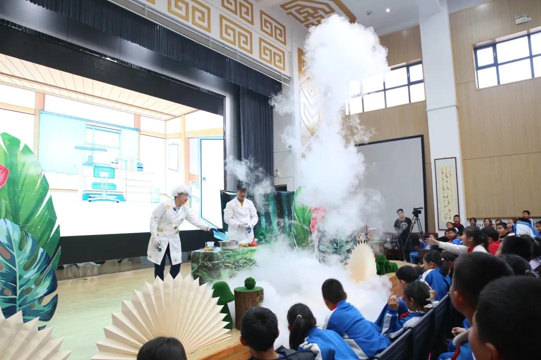 内蒙古科技馆的科技辅导员为在场师生上演了科普剧《精灵族魔幻传奇》,通过寓教于乐的方式,向大家传播了声音相关知识,并强调了团结合作的重要性。