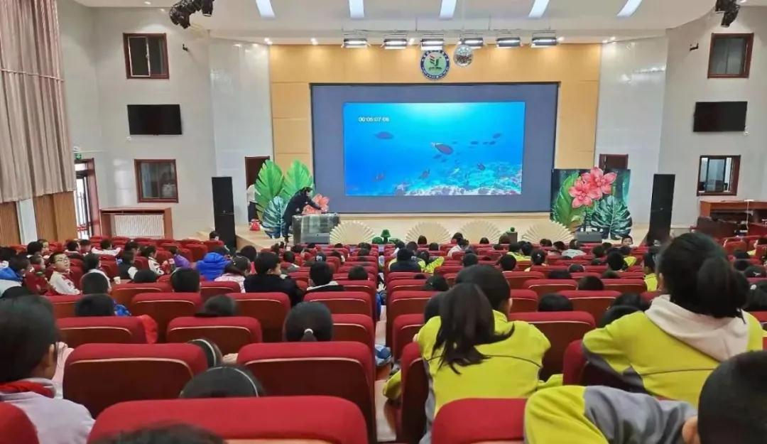 随后播放了汉语版科普影片《海洋:蓝色星球》, 在影片结束后,科技辅导员为师生上了一堂科学课《探秘海洋》,课程内容精彩纷呈,学生们踊跃参与,与老师积极互动。