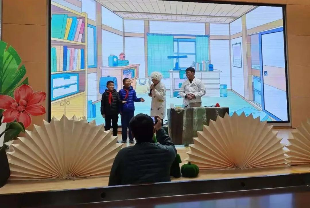 内蒙古科技馆辅导员为在场的师生们上演了科普剧《精灵族魔幻传奇》,通过观看科普剧,师生们了解到声音是如何产生的,以及团结的重要性,通过寓教于乐的形式使同学们在看剧的过程中理解科学知识。