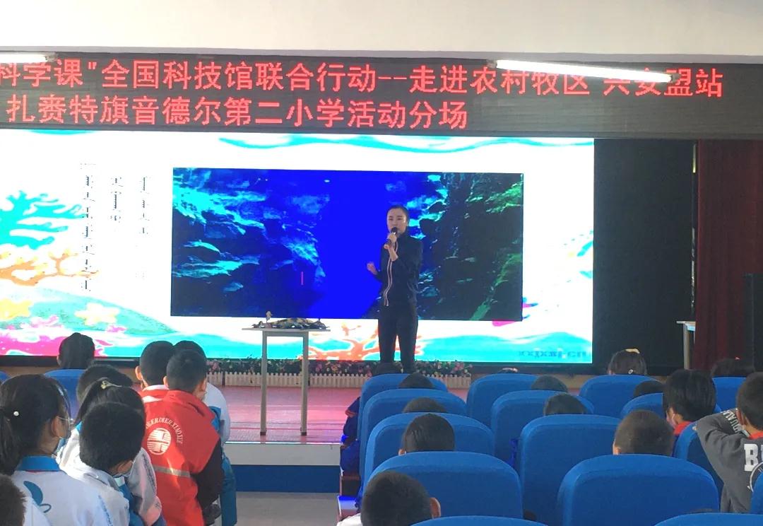 馆校结合,开辟素质教育新思路。11月19日、20日,内蒙古科技馆的科技辅导员带着优质的科普资源走进学校,让孩子们体验了多场精彩的“科普盛宴”。此次活动内容丰富,形式多样,包括科普剧、科学实验秀、科学课、科普影片等。其中,配合蒙古语版科普影片《海洋:蓝色星球》设计的蒙古语科学课程《探秘海洋》在扎赉特旗音德尔第二小学获得师生的喜爱,学生们近距离学习到了更多的科学知识;科学课《奇妙的重心》引导学生进行探究式学习,通过实验、互动游戏让学生对重心知识有了深刻地理解。