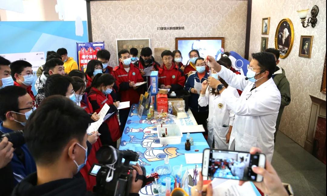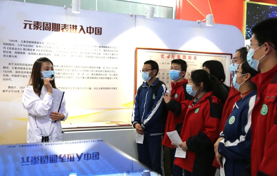 活动中,同学们首先带着学案在“门捷列夫实验室”完成了化学实验,之后在老师的带领下,参观了“律动世界——化学元素周期表专题展”。通过对实物展品的参观体验,让同学们直观了解元素周期表形成、应用和发展的历程,并从化学元素周期律的角度出发,结合与化学元素有关的实验现象,直观展现化学元素在生活当中的重要作用,使同学们在学习课本知识的同时,进一步了解化学现象及其背后的原理知识,激发了同学们对化学、对科学的热爱之情。