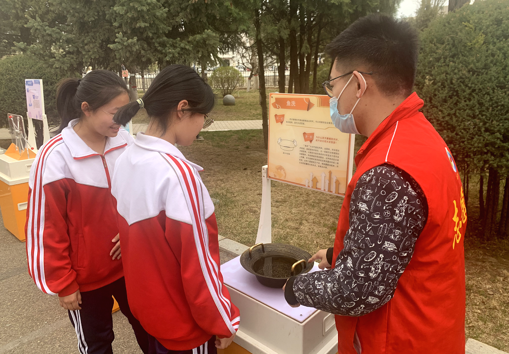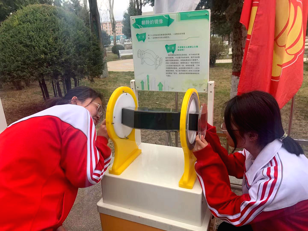 本次科普大篷车共展出12件展品,涉及光学、力学、电学和化学等学科。科普大篷车工作人员布置好展品,同学们都迫不及待跑过来操作展品,感受科学的魅力。“正极压力”“磁力旋转摆”“懒惰环”等有趣展品备受同学们的青睐。科普大篷车工作人员详细地为同学们讲解了每件科普展品背后的的原理,同学们一边操作展品一边积极提出问题,与科普大篷车工作队人员探讨交流。