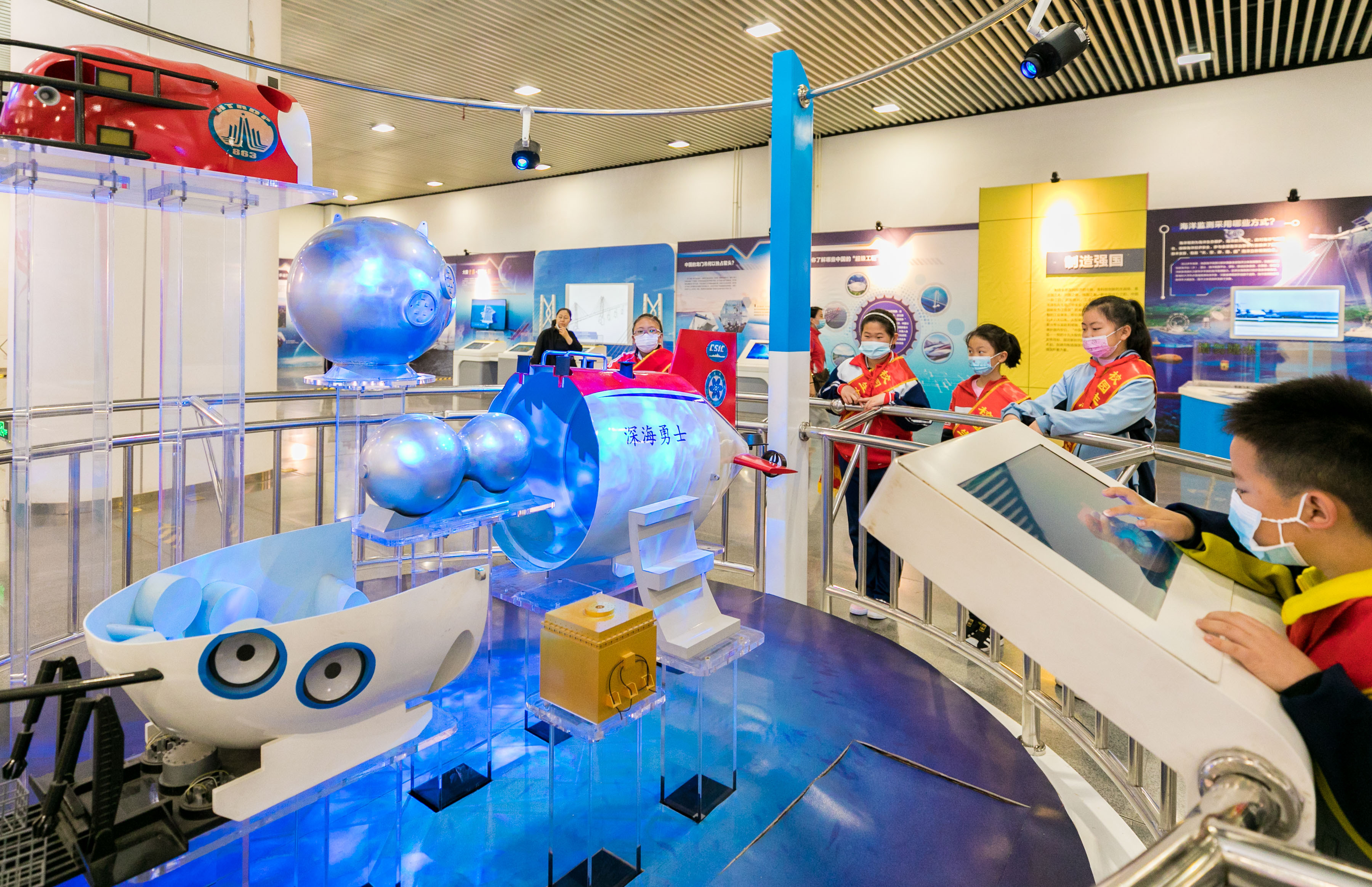 为庆祝中国共产党成立100周年,5月16日,由中国科协主办,中国科技馆、内蒙古科协承办,内蒙古科技馆承展的“礼赞共和国——科技成就科普展”在位于呼和浩特市的内蒙古科技馆开幕。本次展览以我国科技发展自主创新、战略需求、前沿领先、重大工程等重要领域为切入点,设置了逐梦星空、瀚海扬波、核能战略、制造强国、智慧互联、健康生活等主题展区,全面介绍了我国科技战线取得的重大成就。展览将持续至8月31日。图为观众在内蒙古科技馆展厅内参观深海勇士载人潜水器模型。(摄影:丁根厚)