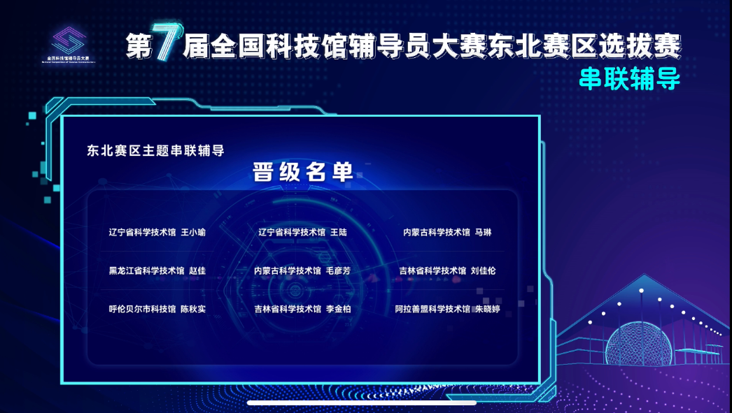 第七届全国科技馆辅导员大赛由中国科学技术馆主办,中国自然科学博物馆学会科技馆专业委员会承办。本次大赛共设七个赛区(华北、东北、华东、东南、中南、西南、西北),东北赛区选拔赛由辽宁省科学技术馆主办。因受疫情影响,东北赛区采取线上直播的方式进行比赛,来自黑龙江、吉林、辽宁、内蒙古三省一自治区34家科技馆的选手共同参加比赛。
