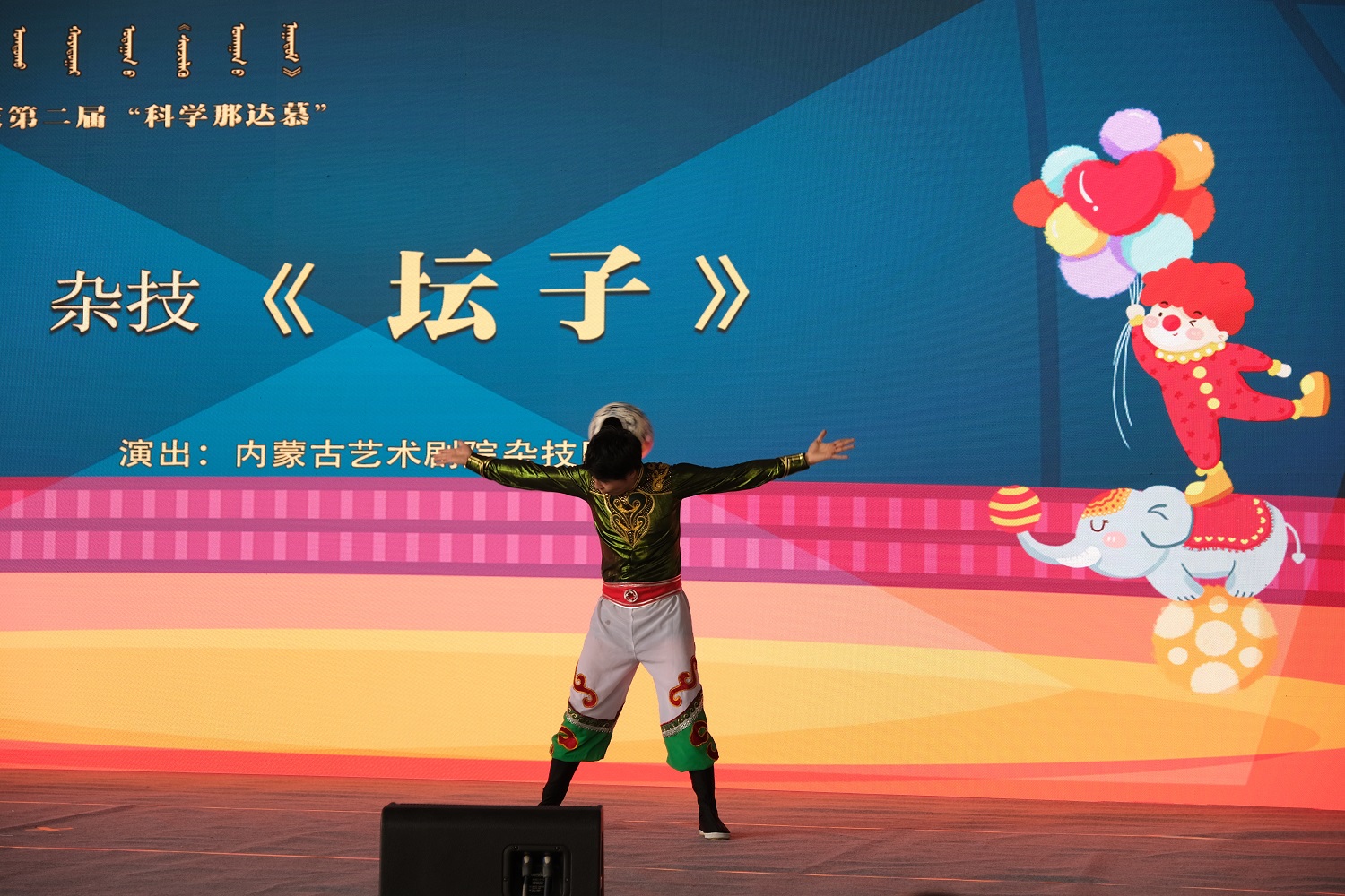 内蒙古艺术剧院杂技团还表演了杂技,杂技演员精湛的演技以及灵活的动作,受到阵阵掌声。