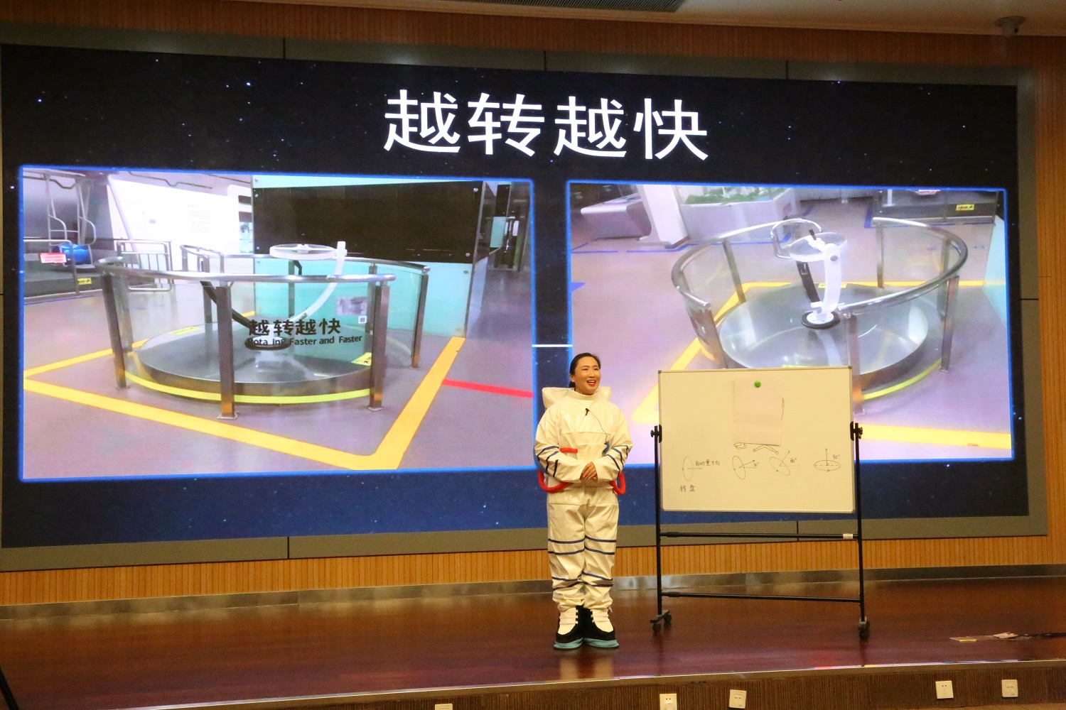 在主题串联辅导环节,选手们须明确自己的辅导主题,从大赛组委会给定的展品库中自选展品,开展现场辅导。“我串联辅导的主题是‘万变不离其宗——教你学会控制变量法’,辅导的对象是初中生,我选择的展品是音乐管、最速降线、体验大气压强……”“我串联辅导的主题是‘科学方法助力探索世界’,辅导的对象是小学五年级学生,我选取的展品是越转越快、最速降线……”比赛开始后,选手首先作辅导思路解析,阐述各自辅导对象、所涉展品、辅导形式、切入思路、创新点及预期效果等内容,随后结合给定展品库中的相关展品进行主题式串联辅导,其中,“最速降线”“自己拉自己”“体验大气压强”等展品成为大家的热门选项。10分钟内,如何提升代入感和互动性成为大家共同的“发力点”。
