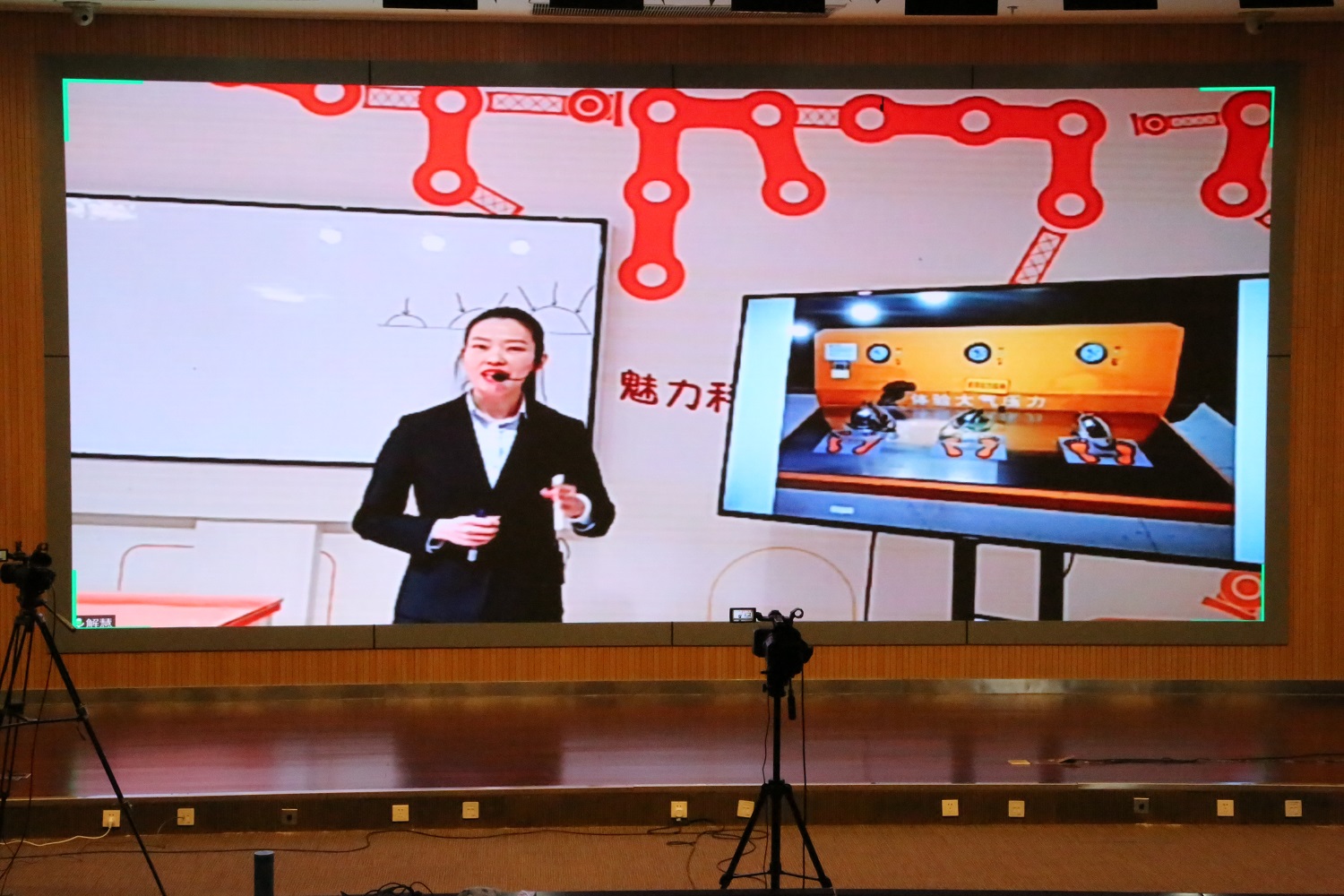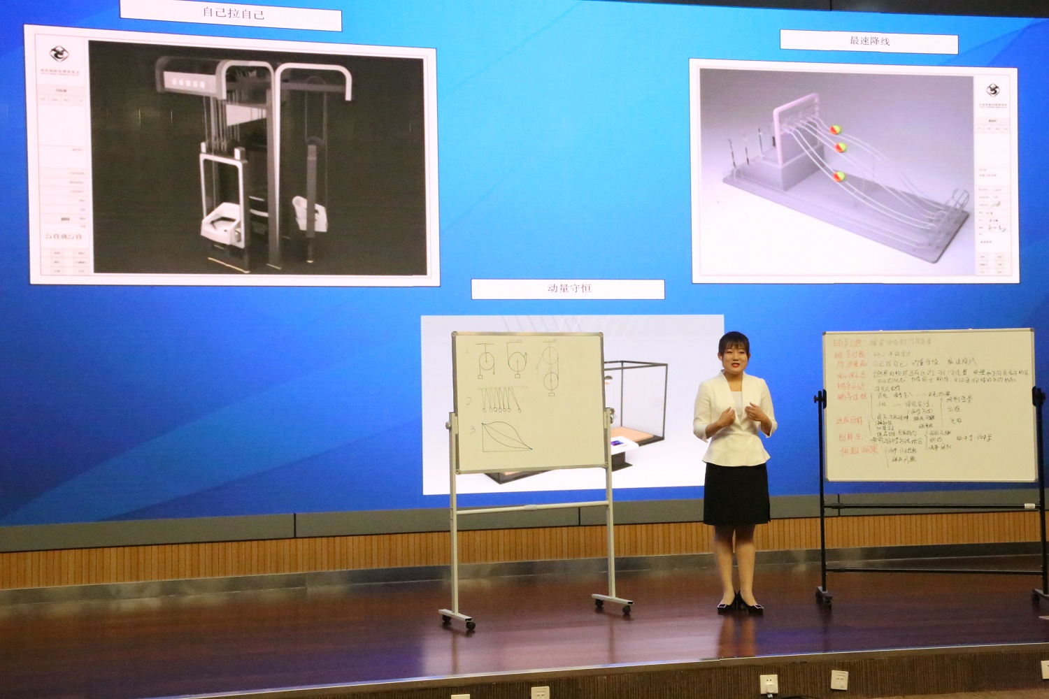 本届大赛展品辅导赛分为单件展品辅导和主题串联辅导两个环节。“初一1班的同学们大家好,欢迎来到科技馆,我们今天一起来进行一场‘速度的比赛’……”在单件展品辅导环节,各选手在4分钟内拿出看家本领,结合各自最“亲密”的展项,借助多媒体、白板、A4纸、笔等辅助工具,或声情并茂、形神兼备,或引经据典、结合时事,将“滑坡竞赛”“最速降线”“越转越快”等展品的科学现象、科学原理、科技史、科技应用全面而清晰地呈现给评委和观众,既激发兴趣,又启迪思维。27名选手在作单件展品辅导后,还进行了科技知识问答,并从中选拔出15名选手晋级到主题串联辅导环节。