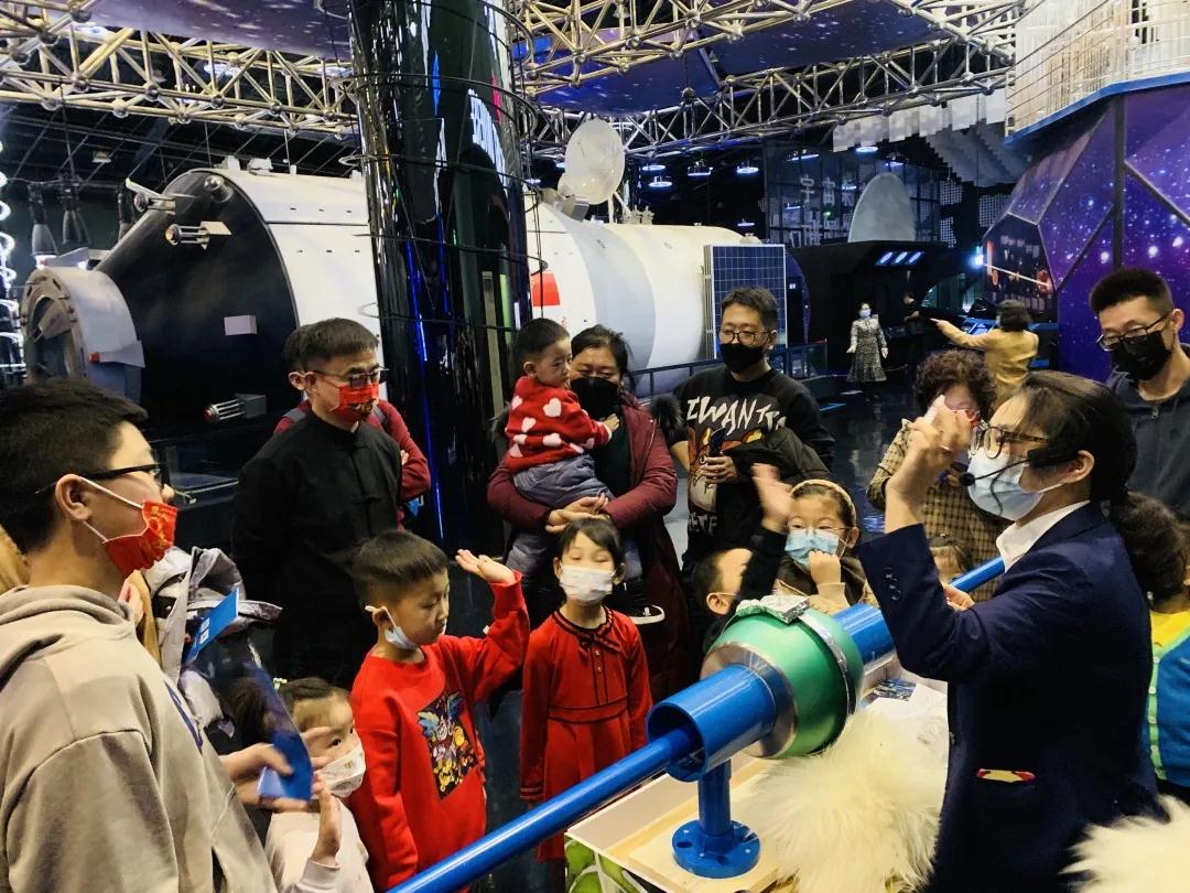 科学表演“新年的颜色”用化学试剂带领观众寻找生活中的“显色高手”,了解丁烷的特性,认识氧化还原指示剂;“静电秀”中,大朋友小朋友一起手拉手,感受强大静电的冲击力,精彩刺激;科学秀“水滴的旅行”通过对比实验,演绎了水滴在超疏水材料上的神奇故事;展品辅导“航天服”揭秘了中国航天员“出差三人组”身着的“微型载人飞船”在太空环境中如何对抗内外压差,暗藏了哪些“机关”;互动展项“模拟翻车”让观众亲身感受车辆在发生倾翻情况下的惊险瞬间,深刻理解安全带的重要作用;互动游戏“谁的反应快”“手眼协调”让观众在游戏中了解左右脑功能分区,以及手、眼、脑精细协调运作的过程;故事剧“菜青虫智斗大公鸡”用富有童趣又充满智慧的童话故事带动亲子共同参与,在寓教于乐中感悟科学精神。