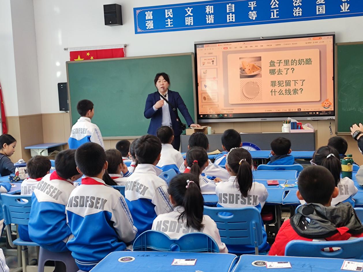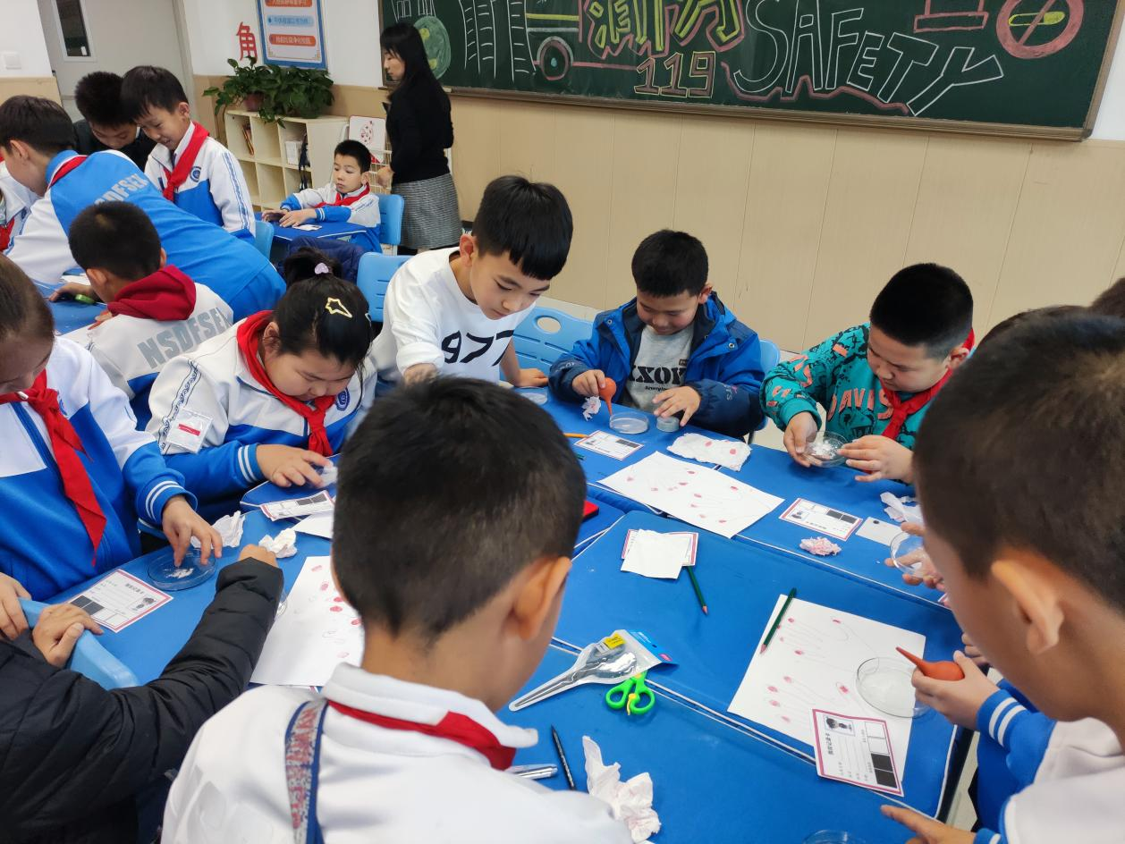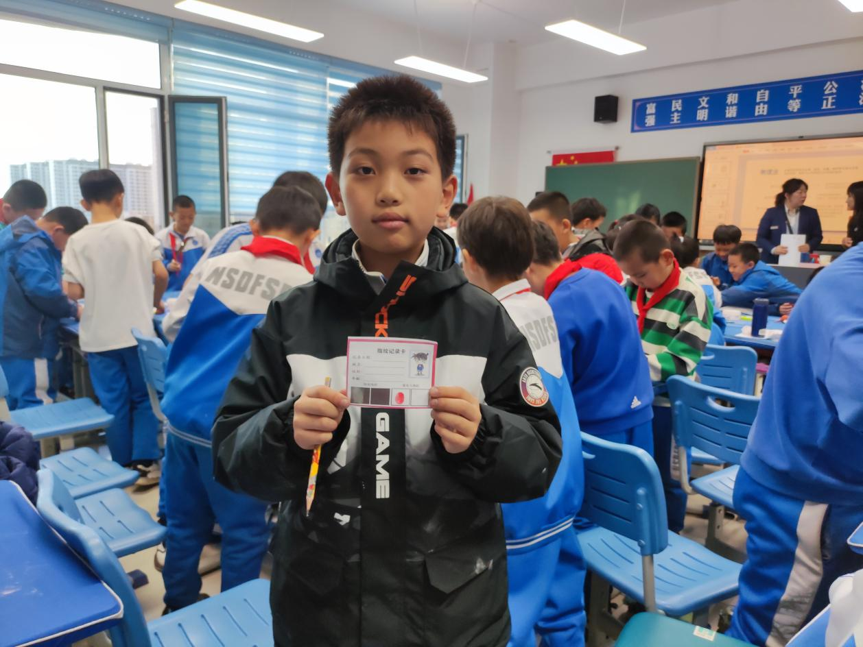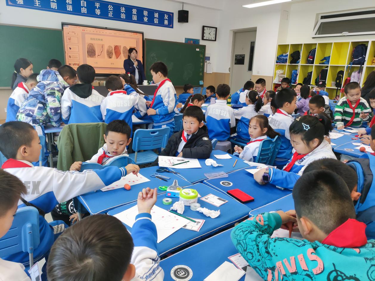 在《指纹的奥秘》科学课中,科技辅导员以冰箱里的奶酪被偷案件为引,需要请同学们根据留下来的指纹找出“小偷”,带领同学们了解指纹的形成、类型以及其独一无二的特点。同学们作为小侦探表现出了极强的学习热情,在快乐的探索氛围里吸收到了科学知识。