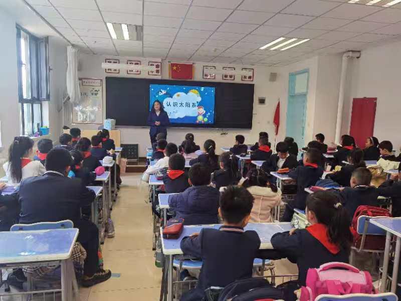 神秘的宇宙空间总是会引起人们的无限遐想,那些美丽的天体一直在吸引着每个人的目光。在科学课《认识太阳系》中,科技辅导员与同学们一起探究太阳系中的恒星、行星。在科技辅导员的引导下,一张小小的纸条,变成了一个太阳系的半径地图,可以直观地看到八大行星在太阳系中的位置,还能看到太阳系的尽头柯伊伯带在哪个位置。同学们感叹于“太阳可以容纳130万个地球”,又对“地球是人类唯一的家园”充满好奇。