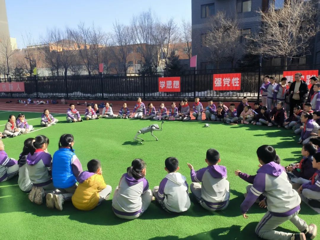 科技辅导员还为同学们带来了充满科幻色彩的“机械狗”表演秀,只见“机械狗”时而站立拜年,时而伸出手来打招呼,时而摇摆身体,跳起了“机械舞”。同学们大声尖叫欢呼,兴奋之情溢于言表。