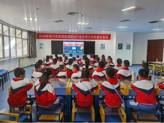 发布时间:2024-04-17 09:32 文章来源:内蒙古科技馆展览教育部4月10日下午,内蒙古农业大学附属学校三年级的40名学生走进内蒙古科技馆,参加2024年现代科技馆体系联合行动“筑梦航天”主题科普活动内蒙古科技馆分会场活动。本次活动是由中国科协科普部指导,中国科技馆、中国自然科学博物馆学会科技馆专委会主办,甘肃科技馆承办,通过线上直播的形式,联合全国科技馆共同开展科学课《一飞冲天》。