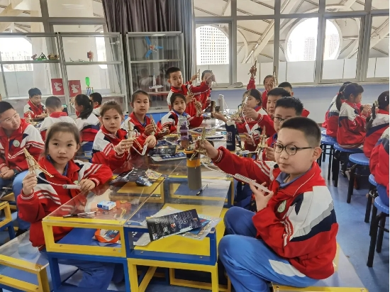 在制作环节中,老师指导学生动手制作注射器动力火箭模型。学生在实际操作中进一步理解科学原理、感受科学奥秘;在模型调试过程中,将学到的航天知识付诸实践,达到学以致用的目的;在组队比赛时,学生们互帮互助、团结协作,完成了任务挑战,提升了科学探索的成就感。