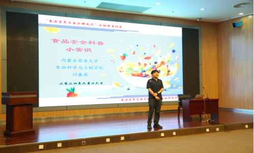 近年来,食品安全问题频发,给人们的健康带来了极大的威胁。无论是农药残留、食品添加剂超标、致病微生物污染,还是假冒伪劣产品,都让人防不胜防。食品安全和营养健康,与同学们的日常饮食息息相关。为了让同学们了解食品的营养与安全知识,内蒙古农业大学食品科学与工程学院副教授、硕士研究生导师闫鑫磊为现场师生开展了《日常生活中的食品营养与安全》科普讲座。讲座中,闫鑫磊凭借其深厚的专业知识和丰富的实践经验,详细剖析了各种食品安全问题的成因和危害。他通过大量案例和数据,让师生们深刻认识到食品安全隐患就在身边。闫鑫磊还重点阐述了食品营养的重要性,介绍了不同食物的营养价值以及如何科学搭配饮食,以获取全面的营养。师生们纷纷表示受益匪浅,对食品安全问题有了更清晰的认识,还掌握了许多实用的食品营养知识。
