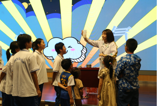“同学们,其实在这个舞台上,有一个看不见的大力士,每时每刻都在你我的身边,它比你们的力气可大多了呢。它是谁呢?”在内蒙古科技馆科技辅导员表演的科学实验秀《隐形大力士》中,知识渊博的“丫丫”和调皮捣蛋“强强”普及了伯努利原理和大气压强在生活中的知识应用,让大家亲身体验了一次大气压强的存在。表演过程中,同学们积极参与互动,亲身体验着大气压强的奇妙之处,对科学的奥秘有了更深刻的理解和感悟。