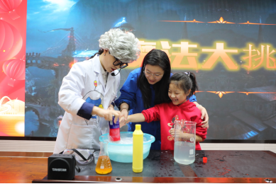 互动环节是科学实验秀《魔法大挑战》的又一高潮,观众们热情高涨。上台参与活动的几位职工和小朋友在辅导员指导下,亲身体验“火焰掌”实验。尽管心中难免有些忐忑与紧张,但当跳跃的火焰真的在自己手中舞动时,他们的脸上瞬间绽放出兴奋与自豪的笑容。这一刻,他们不仅见证了科学的奇迹,更亲身体验到了探索未知的喜悦与成就感。这份珍贵的体验,无疑将成为他们心中一段美好的回忆。